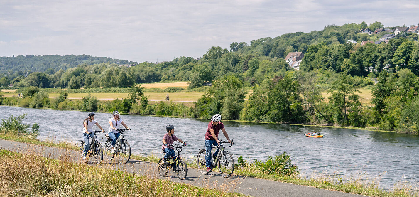 Immer am Fluss entlang: Mit der Familie auf der ADFC-Qualitätsradroute RuhrtalRadweg. © Dennis Stratmann